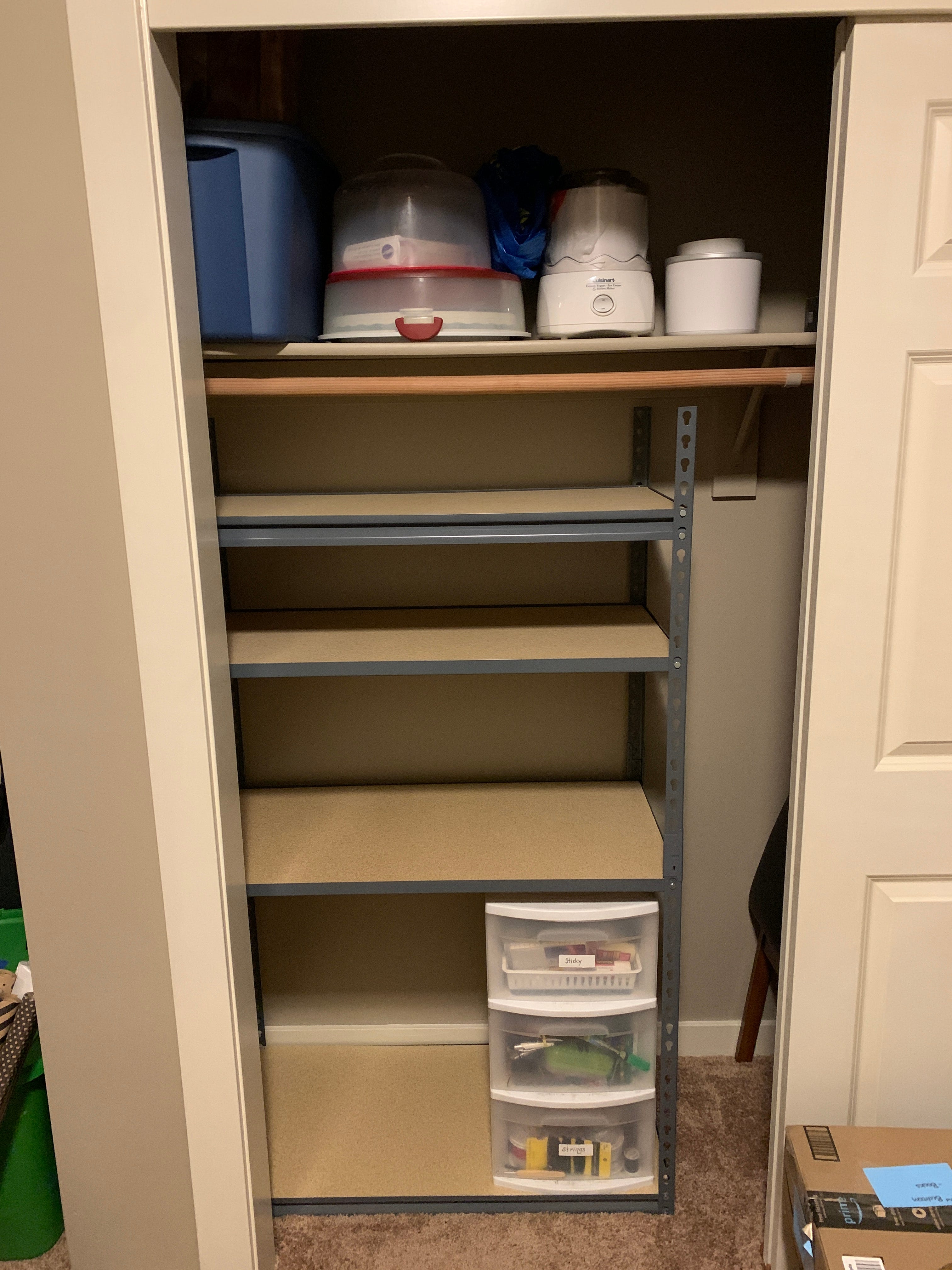 This post should probably be sponsored by Home Depot (but it isn’t). I went there multiple times a day for a few weeks. This closet, which would normally house clothes, became my ingredient warehouse thanks to these shelves!