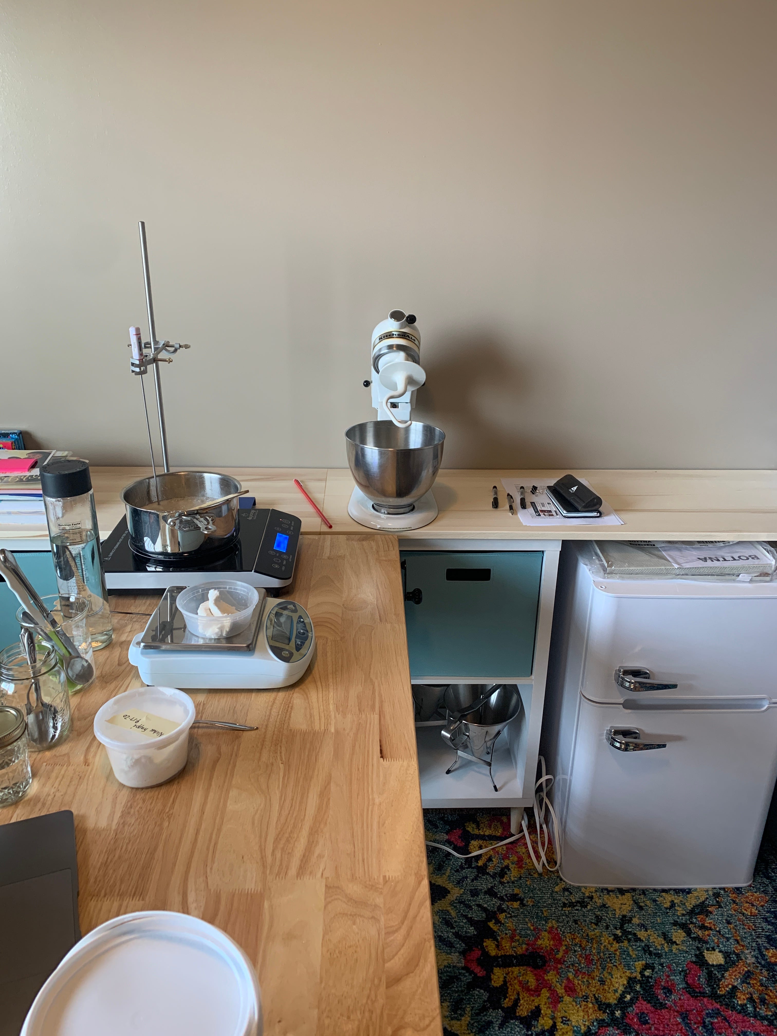 The apartment second bedroom lab is probably the lab that I am most proud of. It started as a 9’x10” room and transformed into what became my lake view office, ingredient storage, analytical lab, development lab, and demo studio.